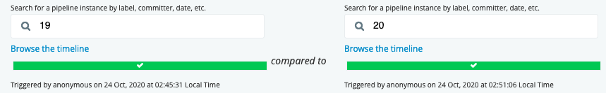 anonymousrather than the real user when a pipeline was manually triggered. I believe the screenshot on the release notes even shows this issue :-) Both of the examples below were triggered by real users (still in the database). The username is displaying correctly on both the pipeline dashboard and stage view.