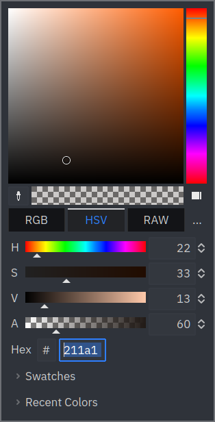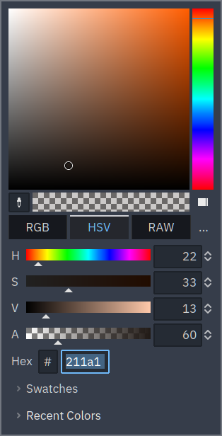 The buttons don't update their look when the theme changes. They probably look fine if you restart the editor after changing the theme (or create a new color picker). But there is currently no code that reacts on NOTIFICATION_THEME_CHANGED to update the overrides on these buttons. Edit: By the way, calling This is what needs to be fixed if we want to preserve the look. But also, these classes were omitted when I was moving all control nodes to the new theme cache approach, because they were being reworked at that moment. So the whole theming code here needs to be improved. From the looks of it, fetching of theme properties is all over the place. |