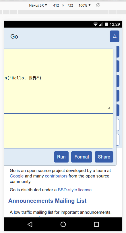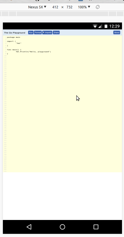 After that open page "Play". Playground open page in windows and not good look for mobile.