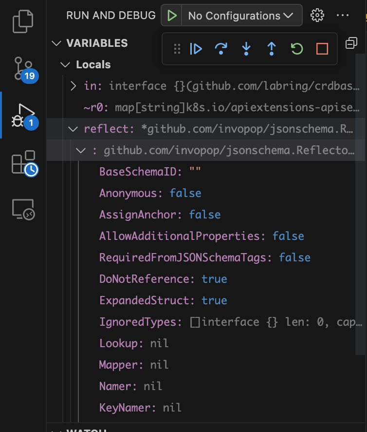 But when I changed to vscode's debug console view, and inspect same var using dlv's command, there are strange rand key shown up: