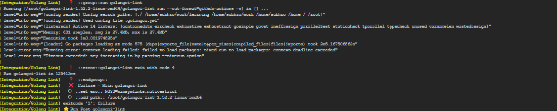 The issue at hand is related to the linting process, when the lint job is executed more than once with netrox/act on a local machine or in a GitHub Action, it gets timeout and even with timeout it takes a lot of time. Two example of run are as follows