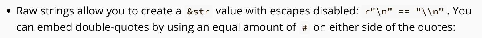 When teaching the class, I’ve noticed that raw strings and byte strings tend to cause confusion. The slide is meant to be a friendly introduction and show how Rust is similar to other languages like C and C++. Instead, the string types cause a ton of questions which are unnecessary at this early point.