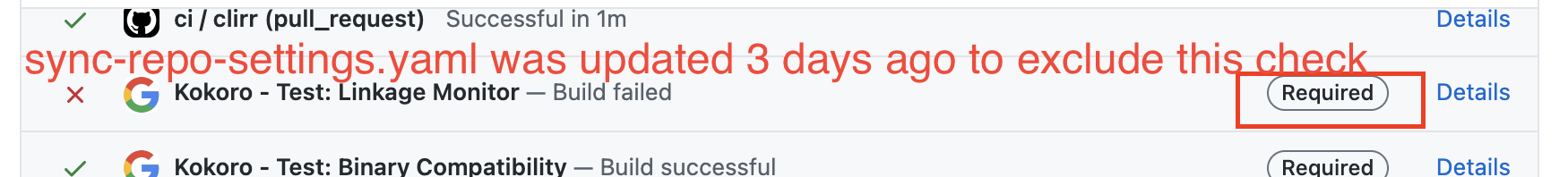 I see the repository settings of required checks have been updated. |
