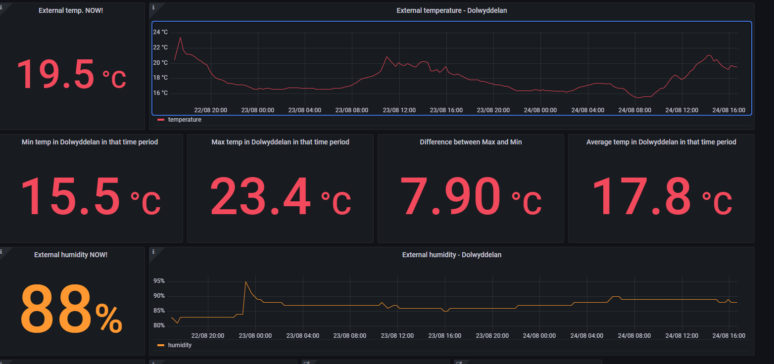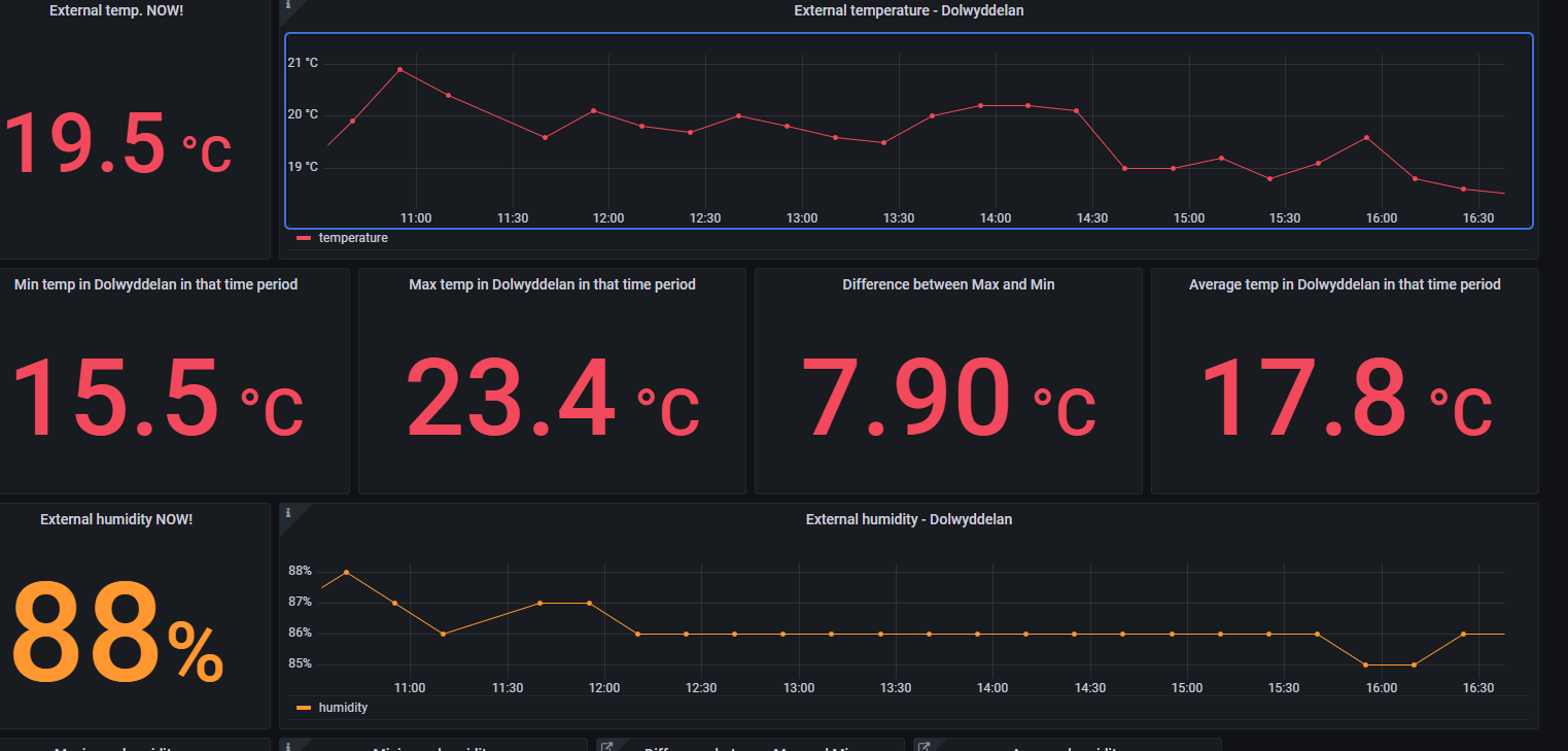 This is a fantastic feature. Well done Team! :) We use Grafana to display IoT data - and one of the key things we need to display to the public is water level of of streams and rivers. The new Public Feature nearly solves this issue but I would also like to be able to allow the public to define a time line themselves rather than the default of the dashboard itself. Is there a way of factoring that in? This would help school kids compare and contrast between different years of data. Another item of feedback is when the member of the public clicks and drags on the timeline, the other elements on the dashboard are not recalculating their values as they would on the normal dashboard view. Non-specific timeline and values Zoomed in on a specific time period, note how the min, max, difference and average have not changed. Thanks so much - it is a great feature and I know our local tax payers will really benefit from the extra information available to them. |
