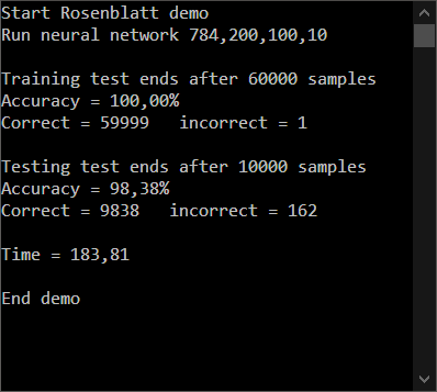 Neural network based on the "perceptron concept" and trained with goodgame|one