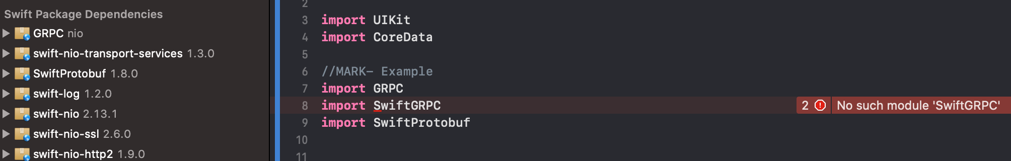 - Went to SceneDelegate.swift then proceeded to type in import SwiftGRPC