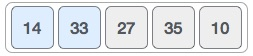 In this case, value 33 is greater than 14, so it is already in sorted locations. Next, we compare 33 with 27.