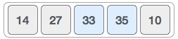 Next we compare 33 and 35. We find that both are in already sorted positions.