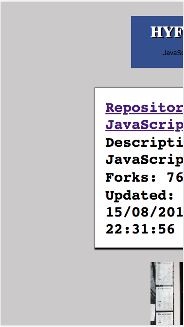 | const header = createAndAppend('h1', div, { html: "HYF Repositories ", class: 'header' }); | ||