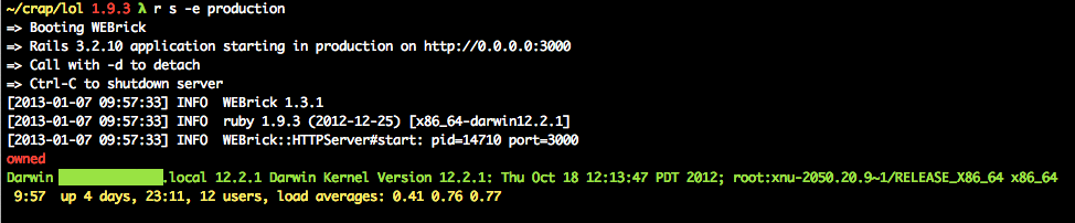 src: "puts 'pwned'; puts `uname -a`; exit!"Unfortunately, actually getting Rails to deserialize this YAML was the hard part. As a proxy class, DeprecationProxy undefines all but a few of its instance methods. This means that when Psych tries to do anything with the newly allocated instance of DeprecatedInstanceVariableProxy, it blows up in our faces.