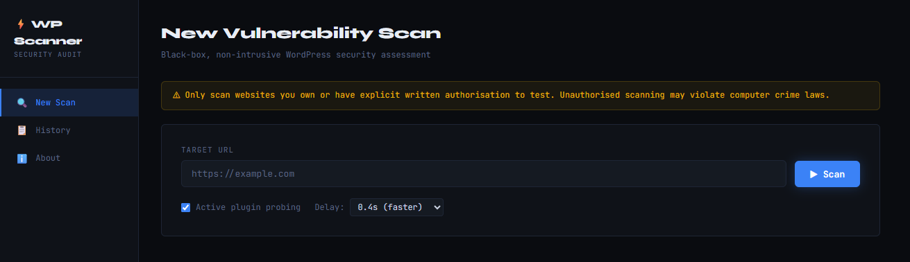 Legal Notice: Only scan websites you own or have explicit written authorisation to test. Unauthorised scanning may violate computer crime laws (CFAA, Computer Misuse Act, etc.).