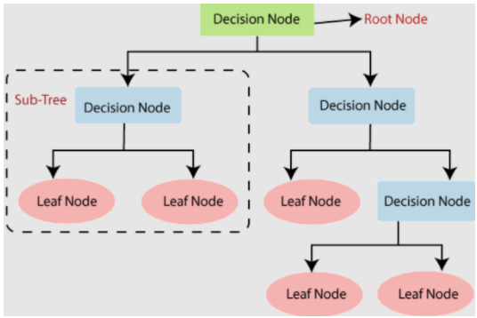 Decision Trees are a family of classifiers that interprets each feature separately and splits the data based on its values. In our case the decision tree will split the data based on our features (pixels) as a value of their intensity. In other words, the tree will start at one pixel and split the data into 2 branches the first if the intensity is high and the other if the intensity is low. It will recursively repeat this process until we get to the leaves (final label) or we decide to stop at a certain depth to avoid overfitting.