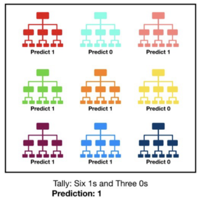 One way to improve the accuracy of classifiers is to use ensemble learning. In this case we will use bagging, where multiple decision trees will be trained, and the output will be a combination of the results from the decision trees. Also, instead of manually training multiple decision trees, we will be using the Random Forest algorithm which not only trains multiple decision trees, but also introduces an extra element of randomness by training each tree on a specific subset of features.