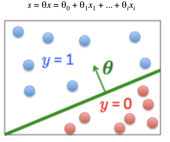 Once an equation is found from linear regression, that can then be plugged into the logistic regression equation to create a non-linear sigmoid function that will give the probability of each point from 0 to 1. To decide the class of each point, a threshold is set on the probability, typically 0.5.