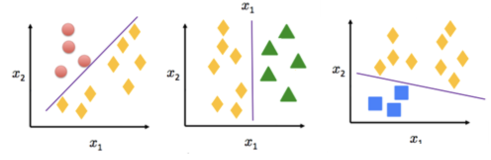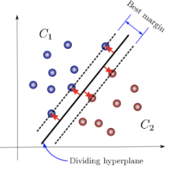 SVM aims to divide the data in a way such that the gap between the 2 classes of data points is the largest. This can be visualized below.