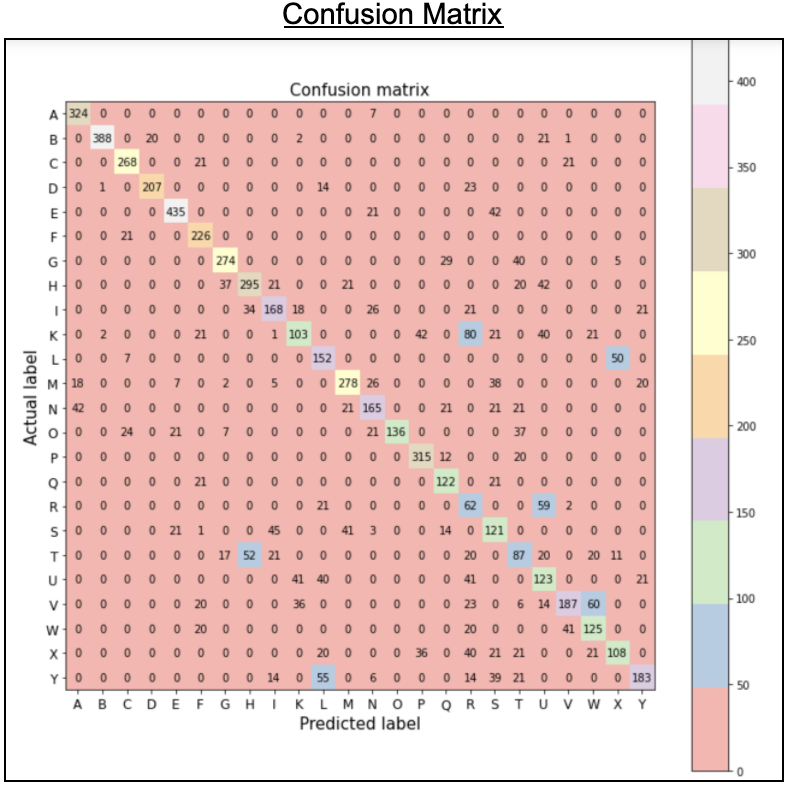 - Incorporating the letters “j” and “z” (by inputting the final or initial gesture of the letter to represent them) into the project and seeing how our models would perform