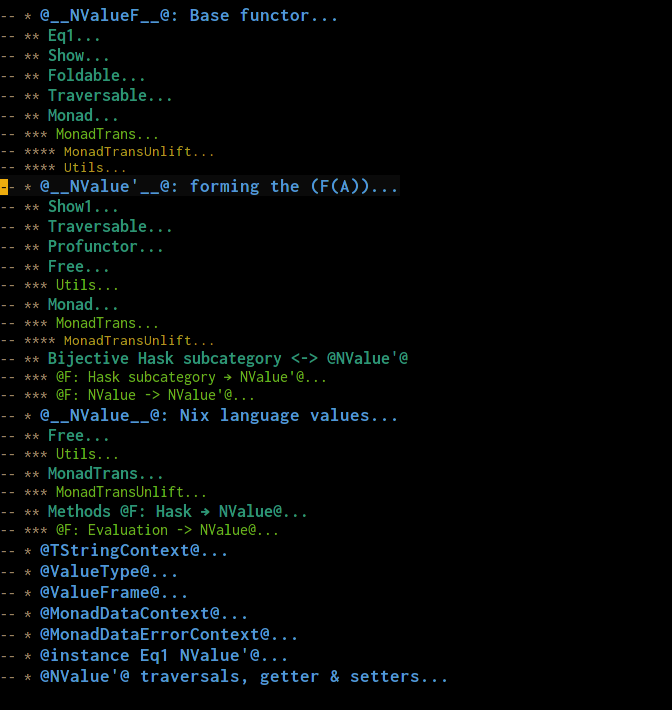 I would welcome contributions or pointers to proper haskell in-code documentation.