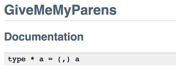 moduleGiveMeMyParenswheretype (*) a= (,) a