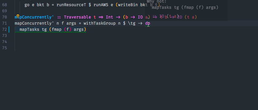 #Sometimes there are more than one hlint suggestion for a given line. In this case, when the light bulb is clicked, VSCode shows a popup list of options to chose from.