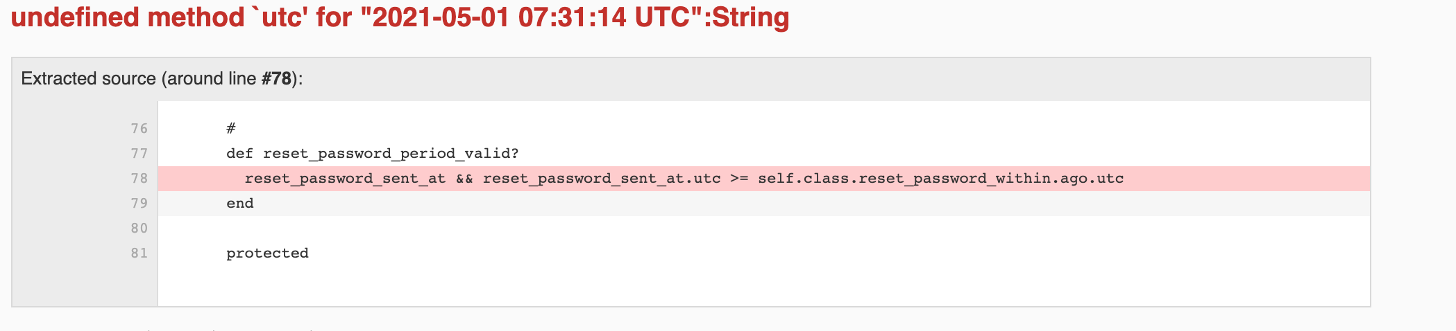 When trying to reset a password this error is produced after using the link with the token. it seems like it is expecting reset_password_sent_at to be a Date object but it is a string. This is running on a recent install of devise - i am using sequel ORM rather than active record but i don't think that should affect anything controller side.
