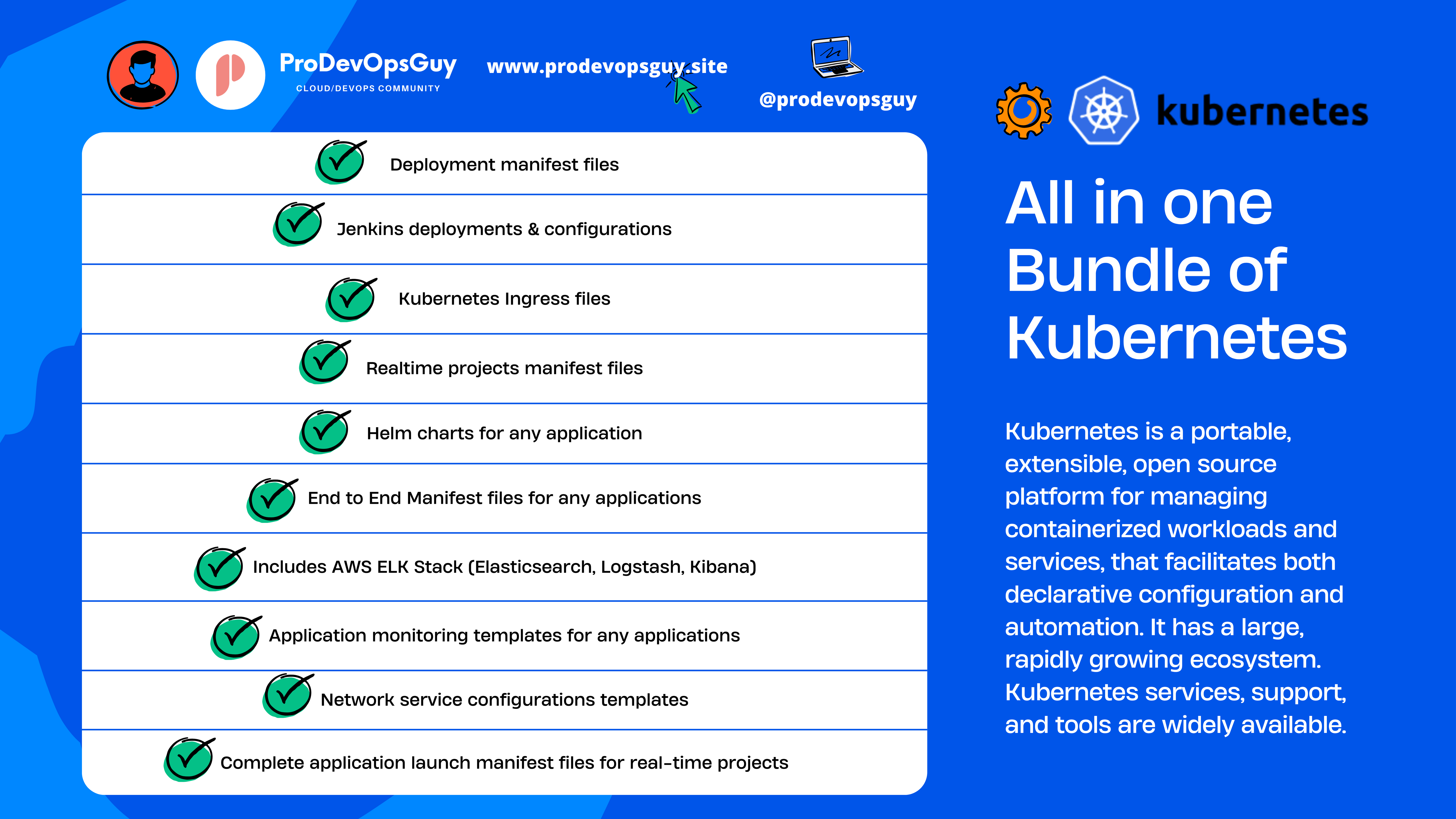 Helm charts for any application: Helm is a package manager for Kubernetes, facilitating the deployment and management of applications. These charts provide pre-configured templates for deploying various applications on Kubernetes.