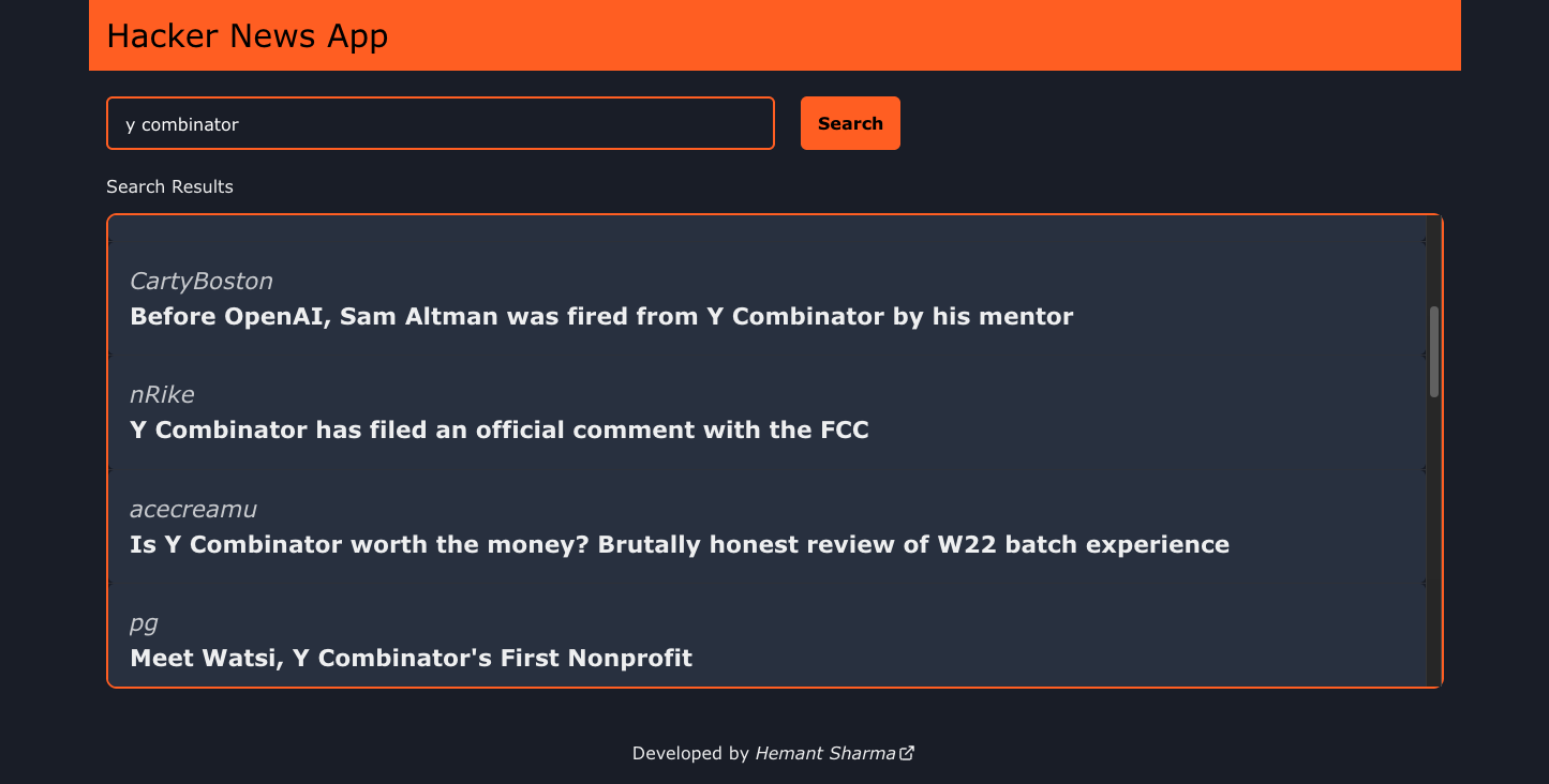 - ⚡ Real-time search results using the Hacker News Algolia API