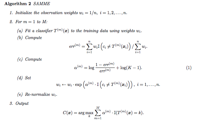 Adaboost for multiclass classification based in SAMME algorithm [T Hastie, S Rosset, J Zhu, H Zou - 2009]