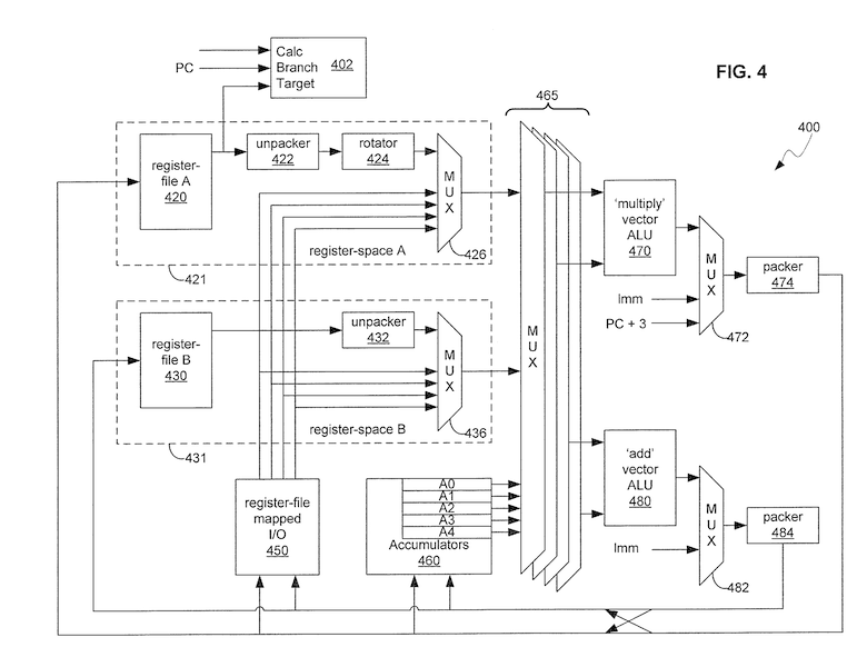 - Accumulators written in one cycle are available immediately in the next instruction (US20110227920-0092).