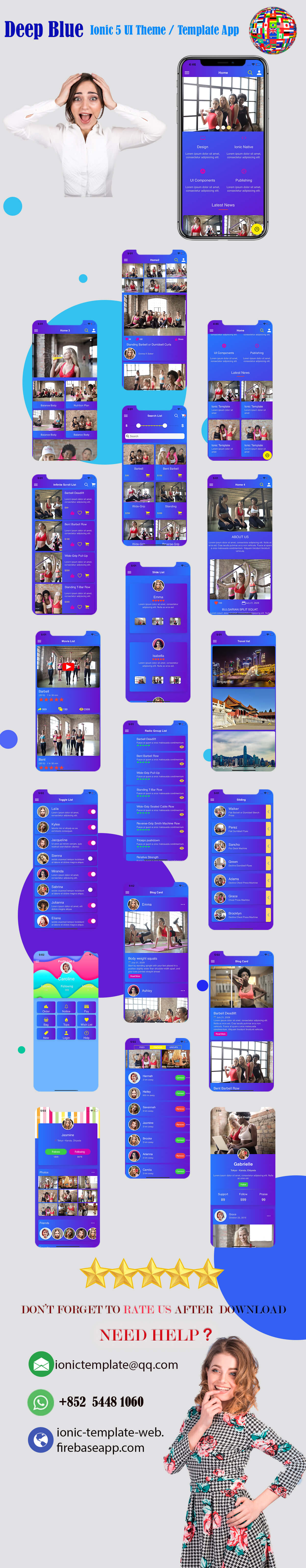 蓝色主题模板,160+页面布局,60+自定义组件,30+动画,轻松的实现你想要的页面布局,快速完成你的APP页面开发工作. 快速应该,多语言支持,代码整洁,你想要的页面功能覆盖率99%.