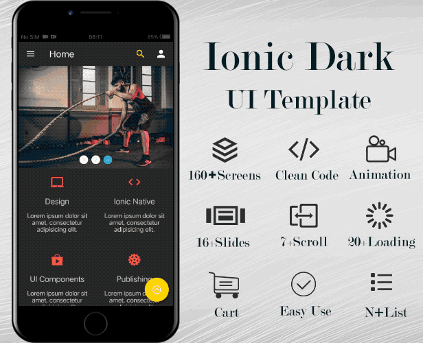 Speed-up your Ionic app development with beautifully designed app/layout template ex: Chat, Food delivery, Feed, Profile , Image Gallery,Google Card,tinder cards, LinkedIn List, drop List,News List, News Card, Shopping Cart, animation list,Orders, etc. 100 Pre-build components Ex: shrinking / fading header , star rating etc. and much more.