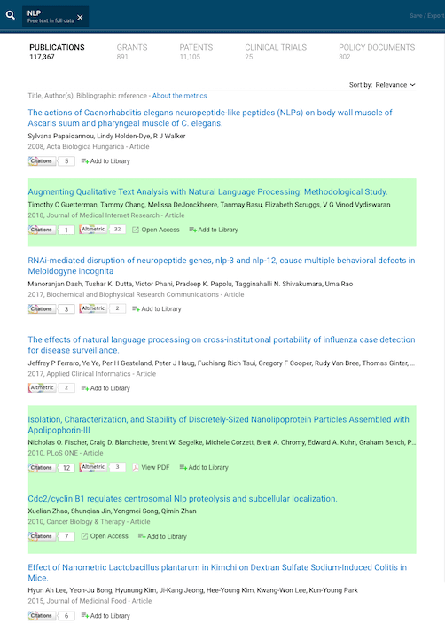 論文検索サイト Dimensions で View PDF か Open Access に該当する article 要素をハイライトします。