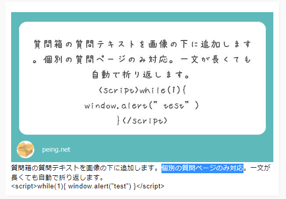 質問箱の質問テキストを画像の下に追加します。個別の質問ページのみ対応。