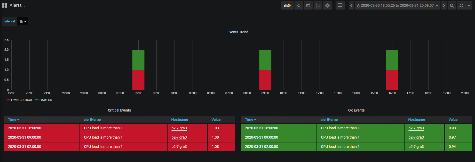 In this repository you will find how to configure infrastructure alerts bases on TICK stack with Grafana visualization