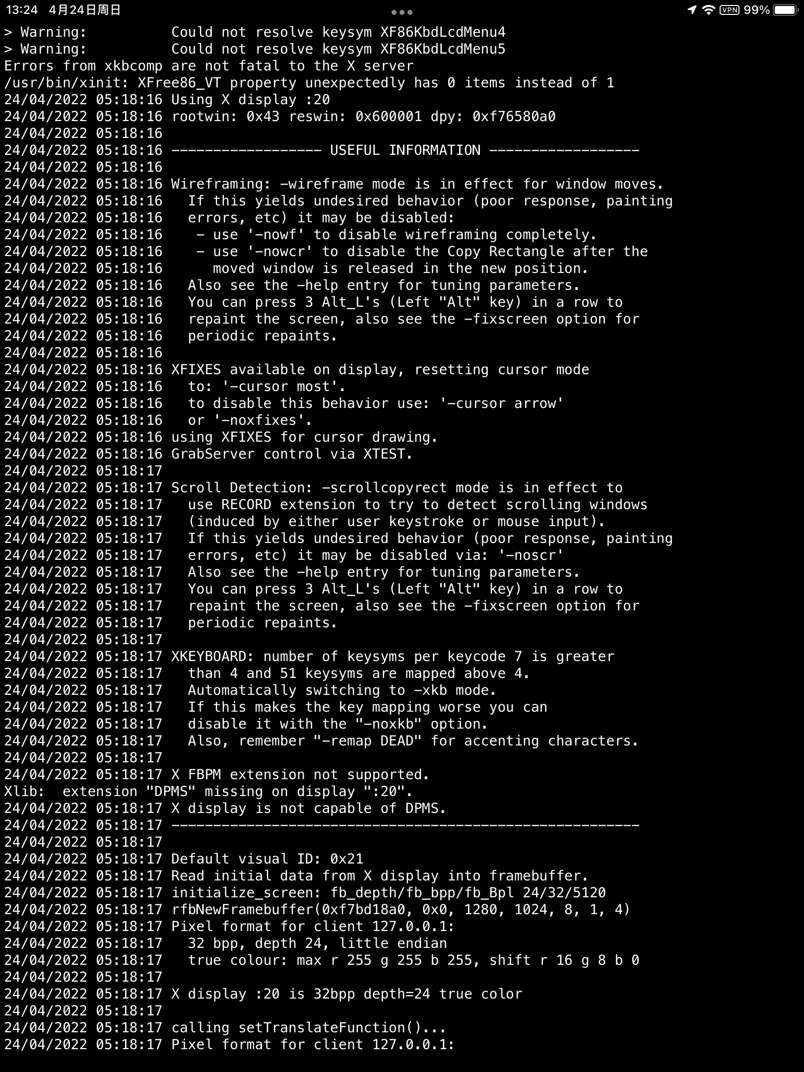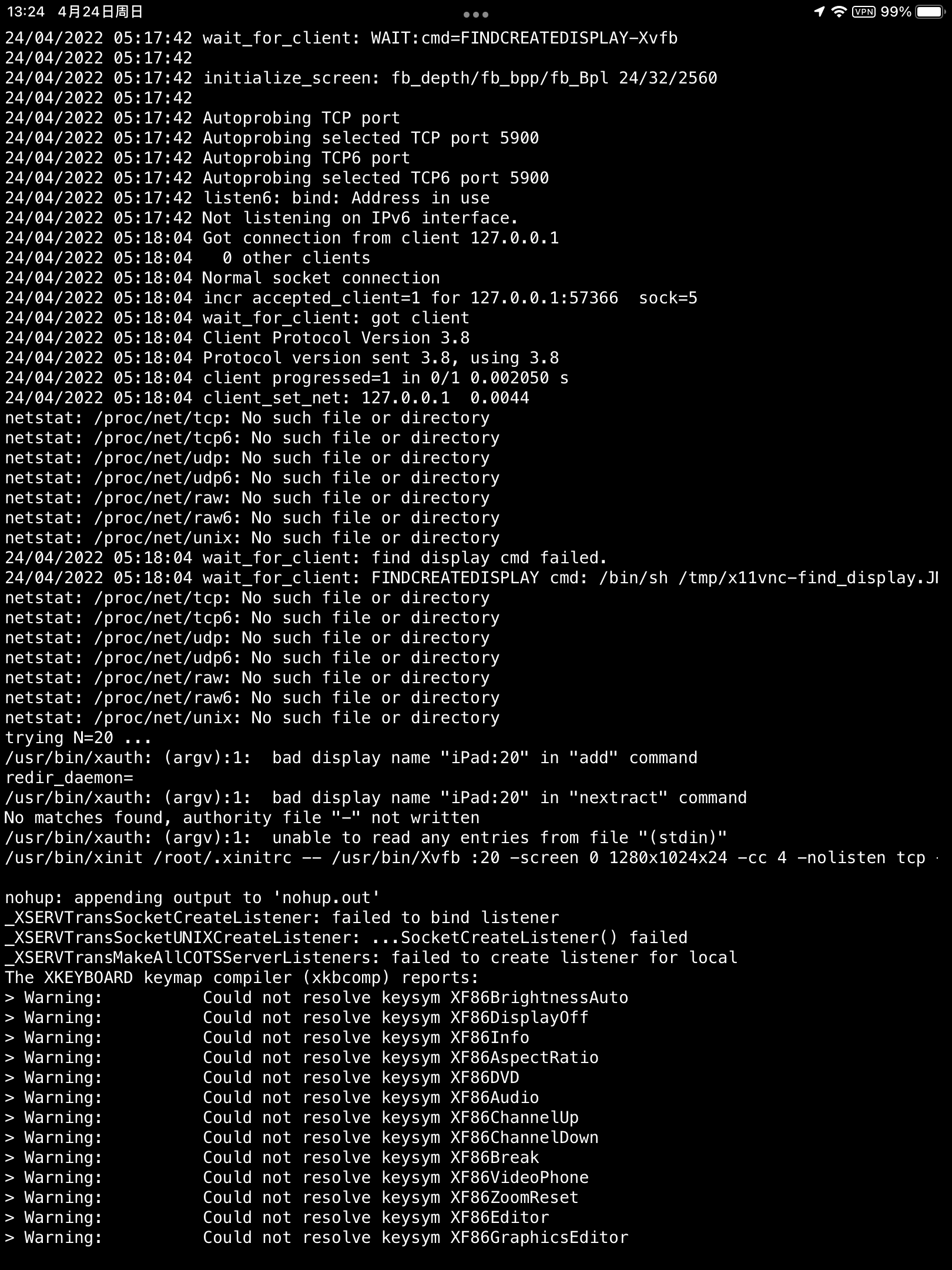 When I'm starting the VNC server and trying to link to it, It reported series of errors. The output is too long to copy, so I can only provide screenshots. #604