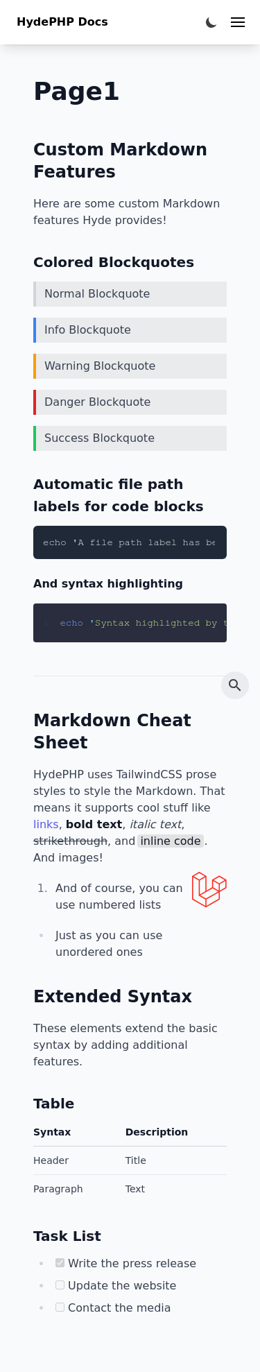 app.cssfile from the HydeFront package. This file will be compiled alongside Tailwind. If users prefer customization, they can remove the import and add the specific styles they want.Todo: Test that checks if config files are matching should test the Tailwind config