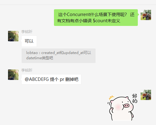 - $concurrent->create(function () use ($count) {
