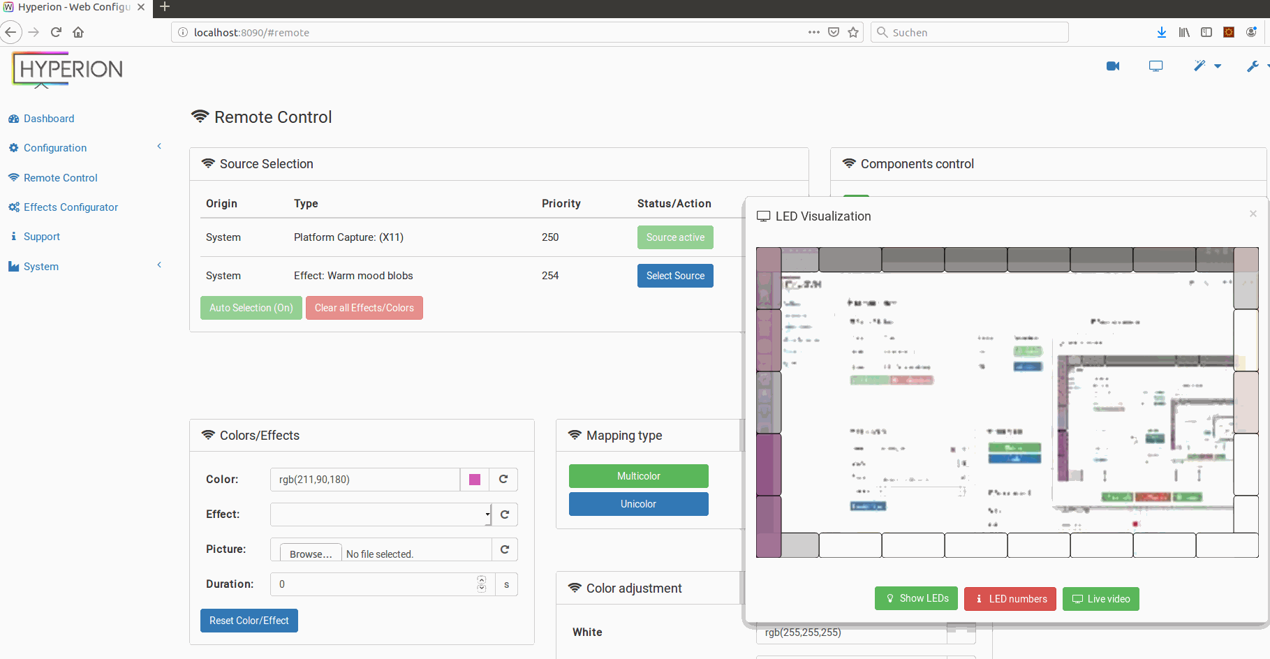 Hast du es getestet? Läufts gut? Mit Opera funktionierts auch - wie ich mittlerweile herausfand. Witzigerweise wird der button auch im mobilen browser angezeigt. Das heißt die API ist grundsätzlich vorhanden, geht aber (noch?) nicht. Weil COMP_IMAGE eigentlich nicht als image streamer gedacht ist. Timeouts werden in der UI für alle unterdrückt außer COLOR/IMAGE/EFFECT. Ich wollte sicher gehen, dass die prio wieder freigegeben wird auch wenn Netzwerk oder so abbricht. Am Ende ist es eine Designfrage, man könnte auch timeout auf -1 setzen, dann muss man aber clearen. |