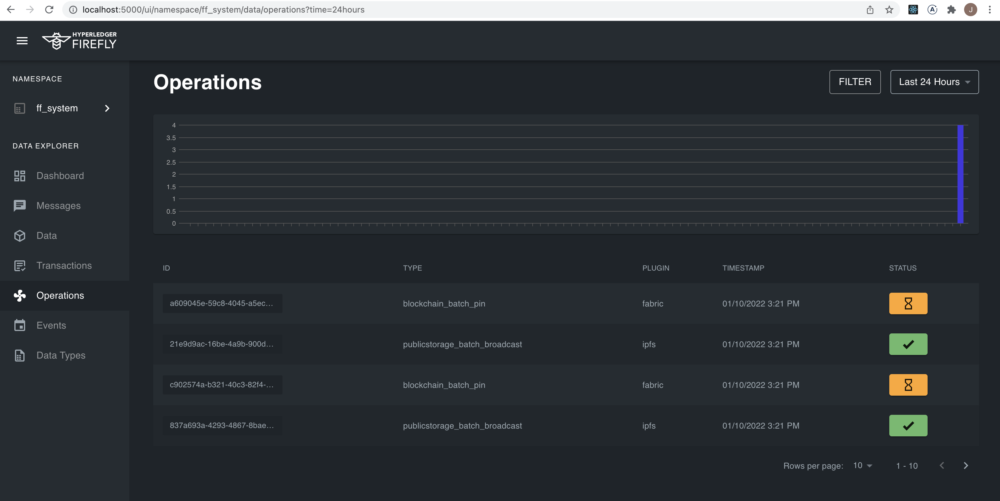 Steps to reproduce: - Start a new Fabric stack - After successful startup, open the Explorer UI and navigate to the FF System namespace - Data Explorer - Operations - Notice the `blockchain_batch_pin` operations are `Pending` <img width="1671" alt="Screen Shot 2022-01-11 at 9 25 14 AM" src="https://user-images.githubusercontent.com/6531684/148960858-e59578b4-4985-4b89-81a8-60eba14b4afd.png">