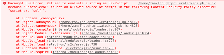 I'm trying to import the module in an Electron application with a recommended Content Security Policy of script-src 'self' but it prevents loading of the module with the error below.