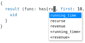 The console tab has some predicate suggestion while I am typing my query. This is very useful to lookup long predicate names. However, it lists each predicate twice, once with < and > and once without: