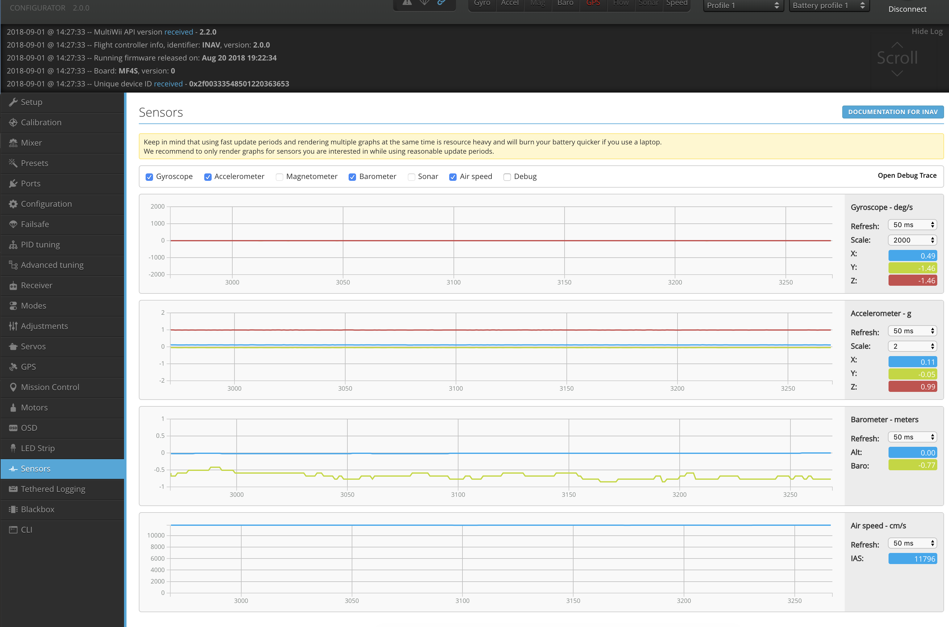 - Connect Airspeed Sensor on I2C2 and 3.3v