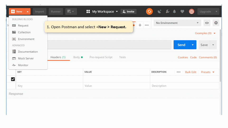 - Change the verb on the upper left to POST, and then replace "Enter request URL " with your URI.
