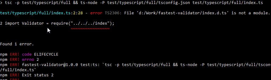 Some workaround for this: /// <reference path="../../index.d.ts" /> // here we make a reference to exists module definition