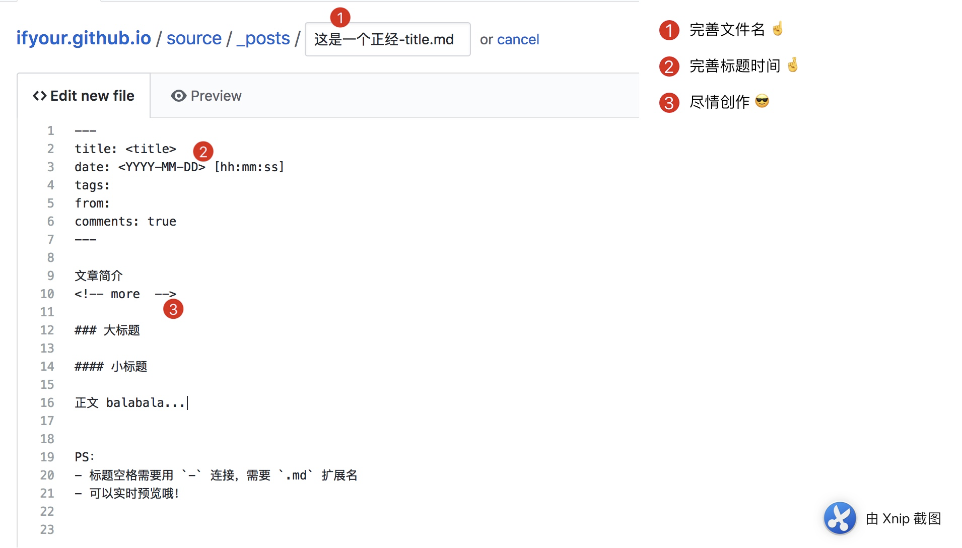 *.md文件,剩下的工作交给 CI 完成吧,这里备了一个模板,方便我快速创建。Step 1