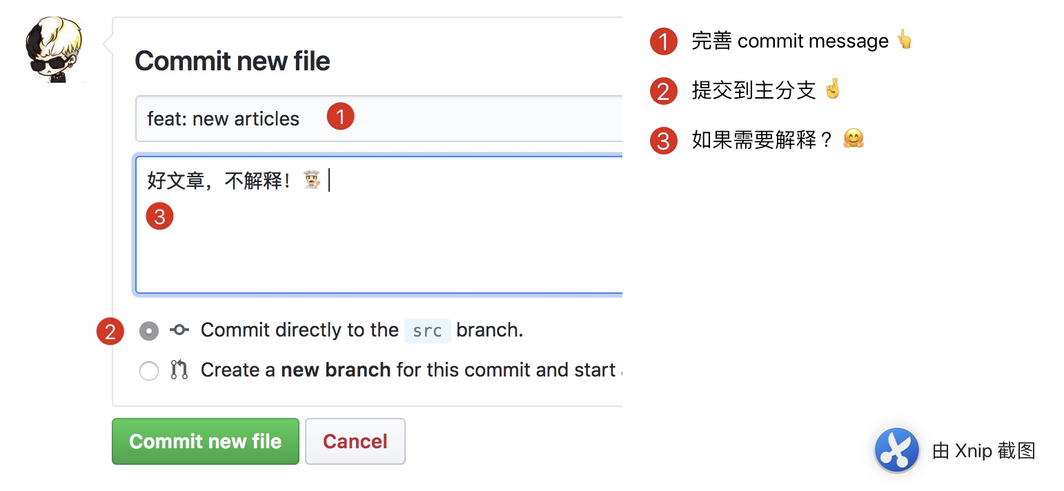 commit message直接 push 即可,等待 CI 构建完成。END