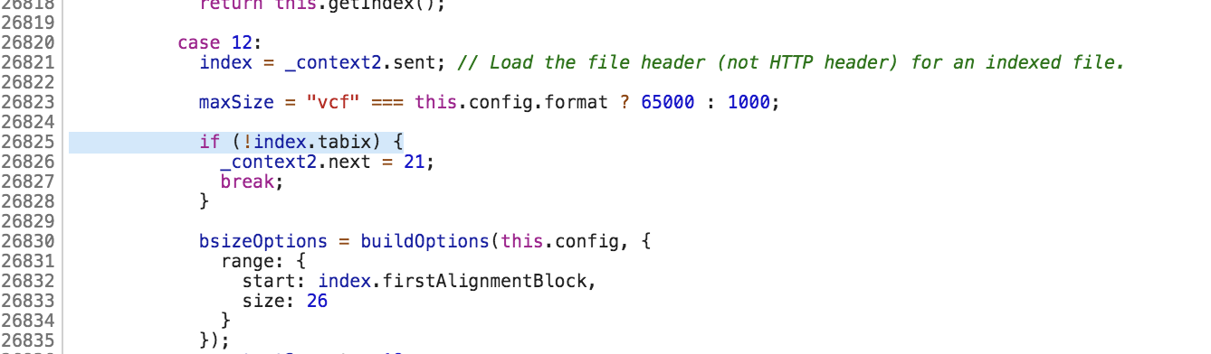 @bw2 RE the tabix.index problem, if the user doesn't have permissions to load the index I can see how that might happen. However the fix would be to correctly detect this condition and give an appropriate message, not to check for index "nullness". Or perhaps I'm misunderstanding you. This comment thread is getting long, for any other problems could you open a git issue with a test case independent of this branch? Thanks. |
