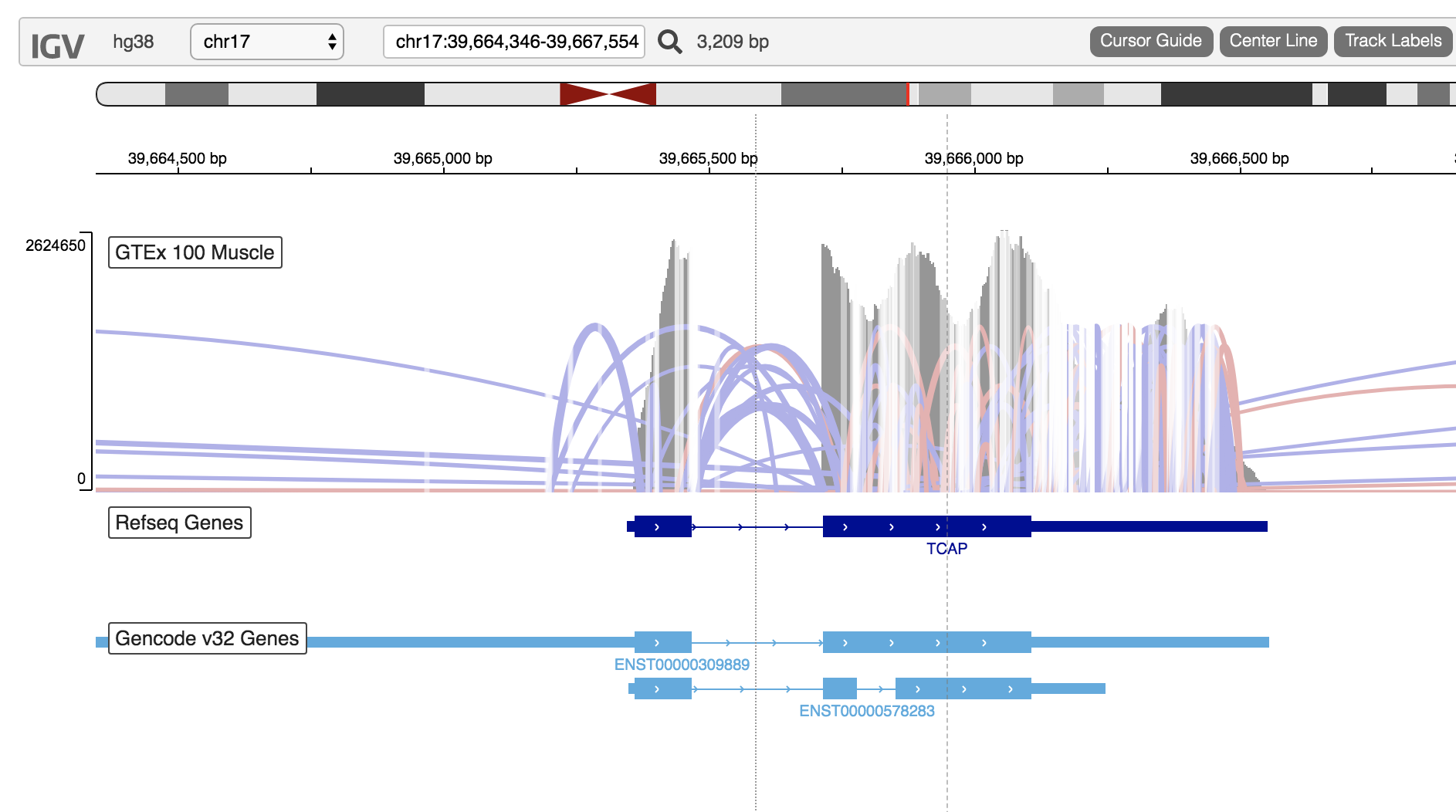 Then, to create a single splice junction track in igv.js: