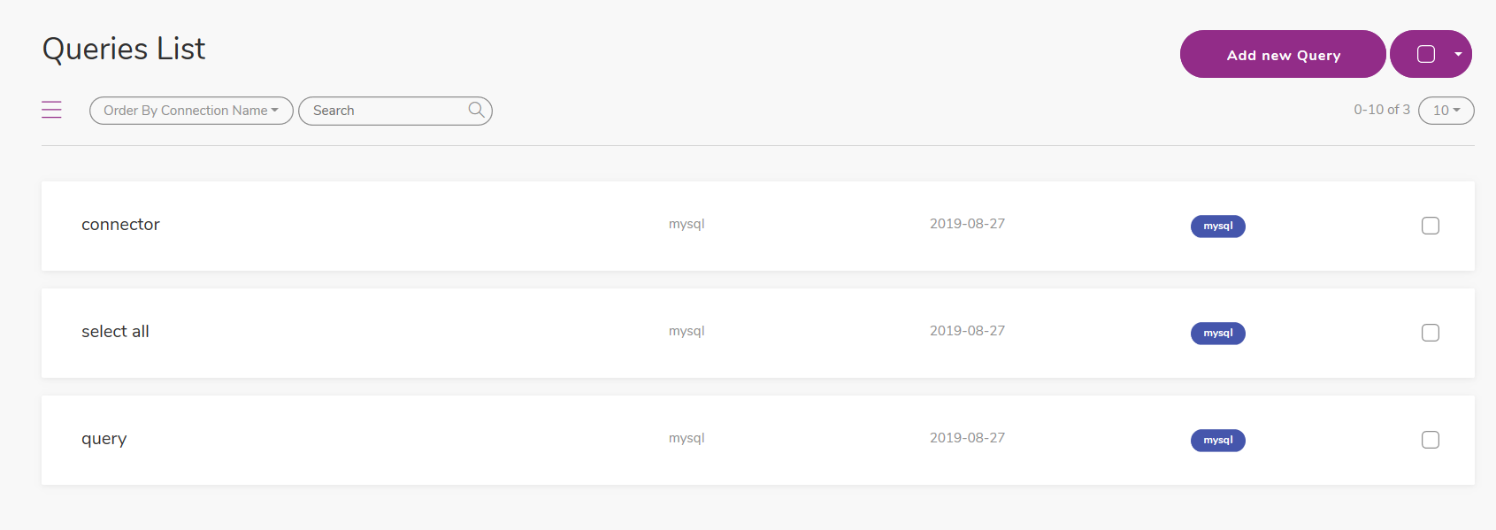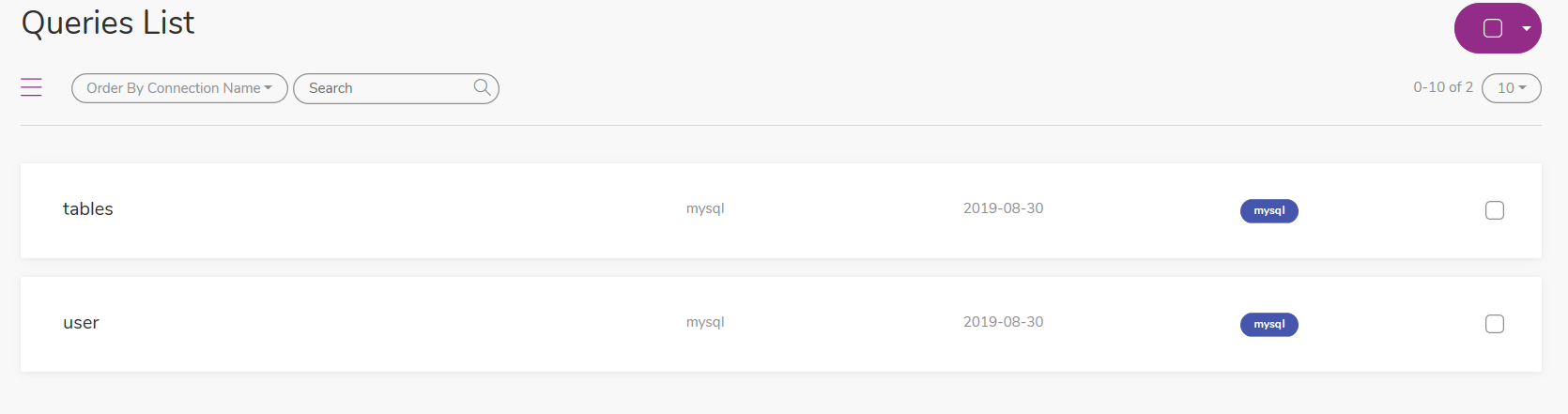 The user executes queries of a connection: