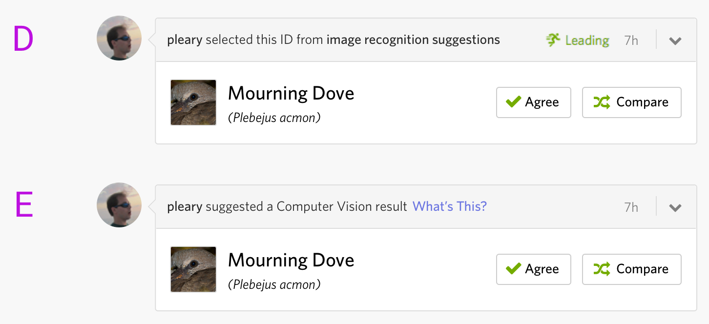 Ok, how's this: "Computer vision is the process of teaching computers to recognize patterns in images. We use computer vision systems trained on iNaturalist photos and observations to provide automated species identification suggestions. This label indicates when a person added an identification based on one of these suggestions." |