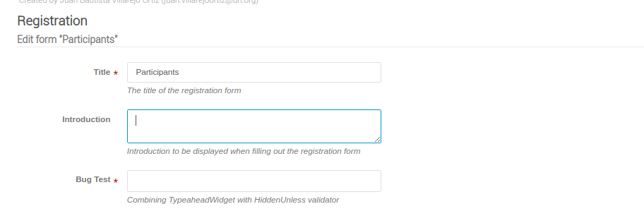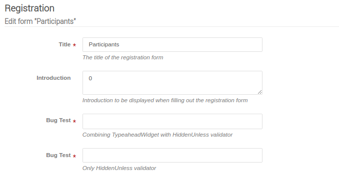 - Add a first (A) StringField with HiddenUnless validator and TypeaheadWidget